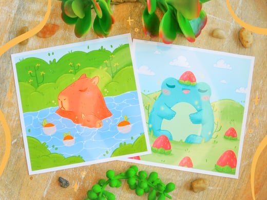 Capybaras & Strawberry Frog Prints